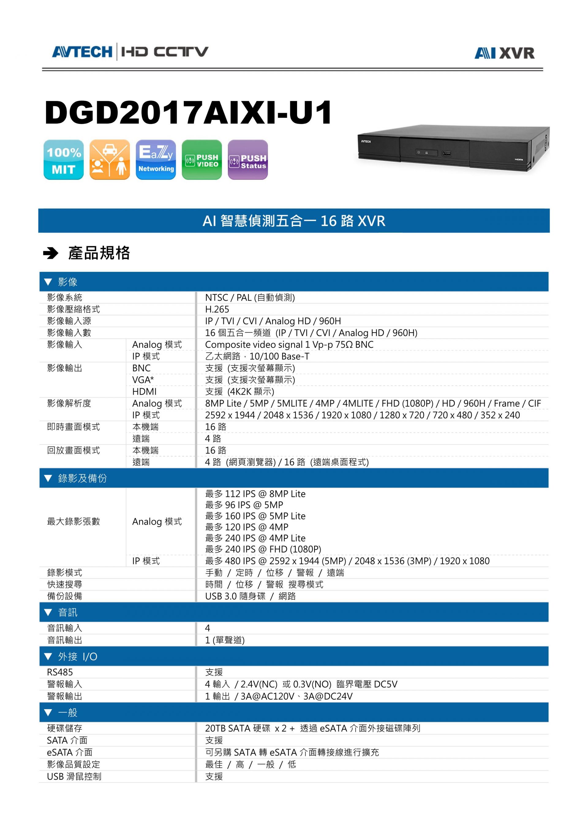 AVZ4017AV-U1 PRO 16路數位錄放影機(4碟) 下一個