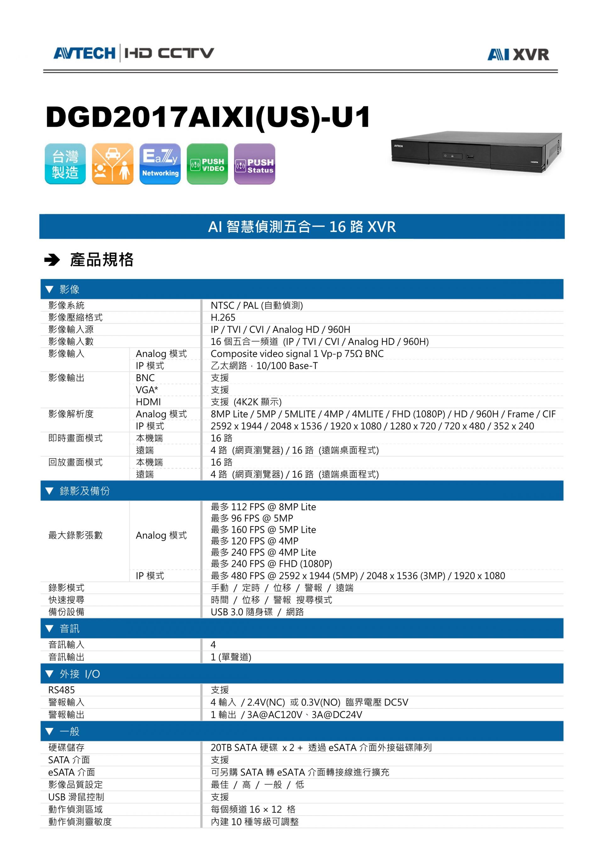 上一個 DGD1009AIXI(US)-U1 8路 數位錄放影機