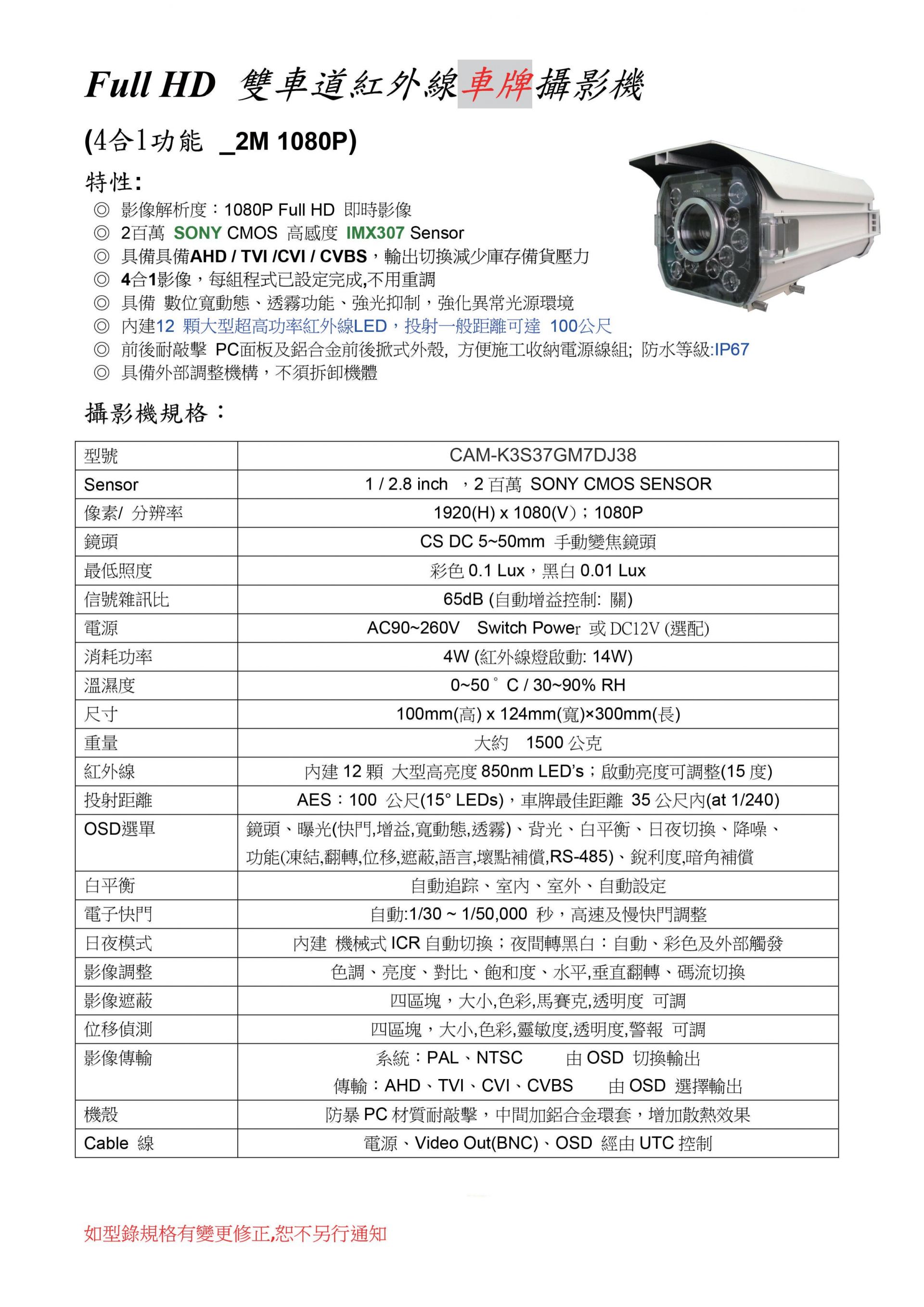 上一個 RY-AHD2000 彩色 槍型攝影機