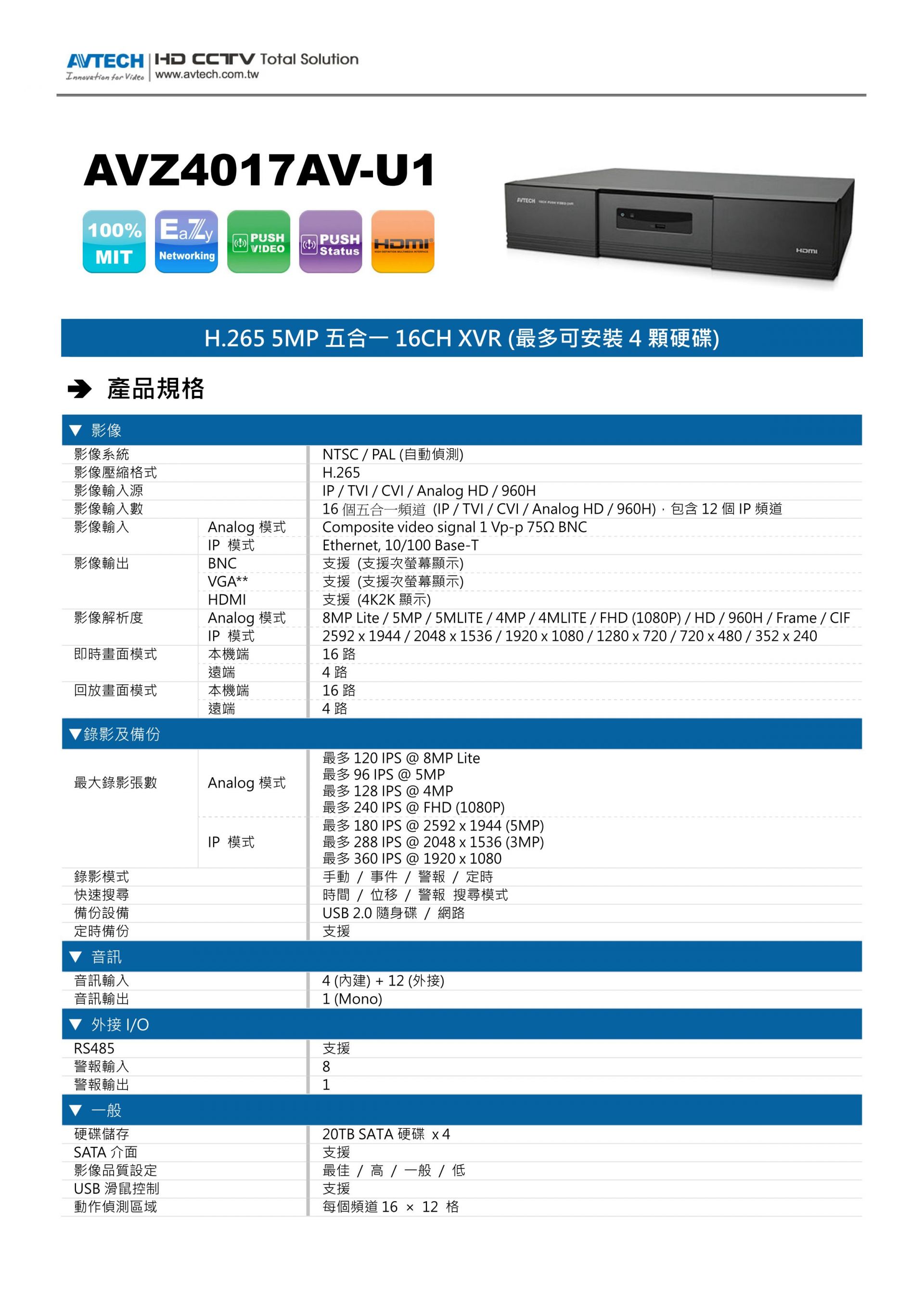 上一個 AVZ4017AV-U1 PRO 16路數位錄放影機(4碟)